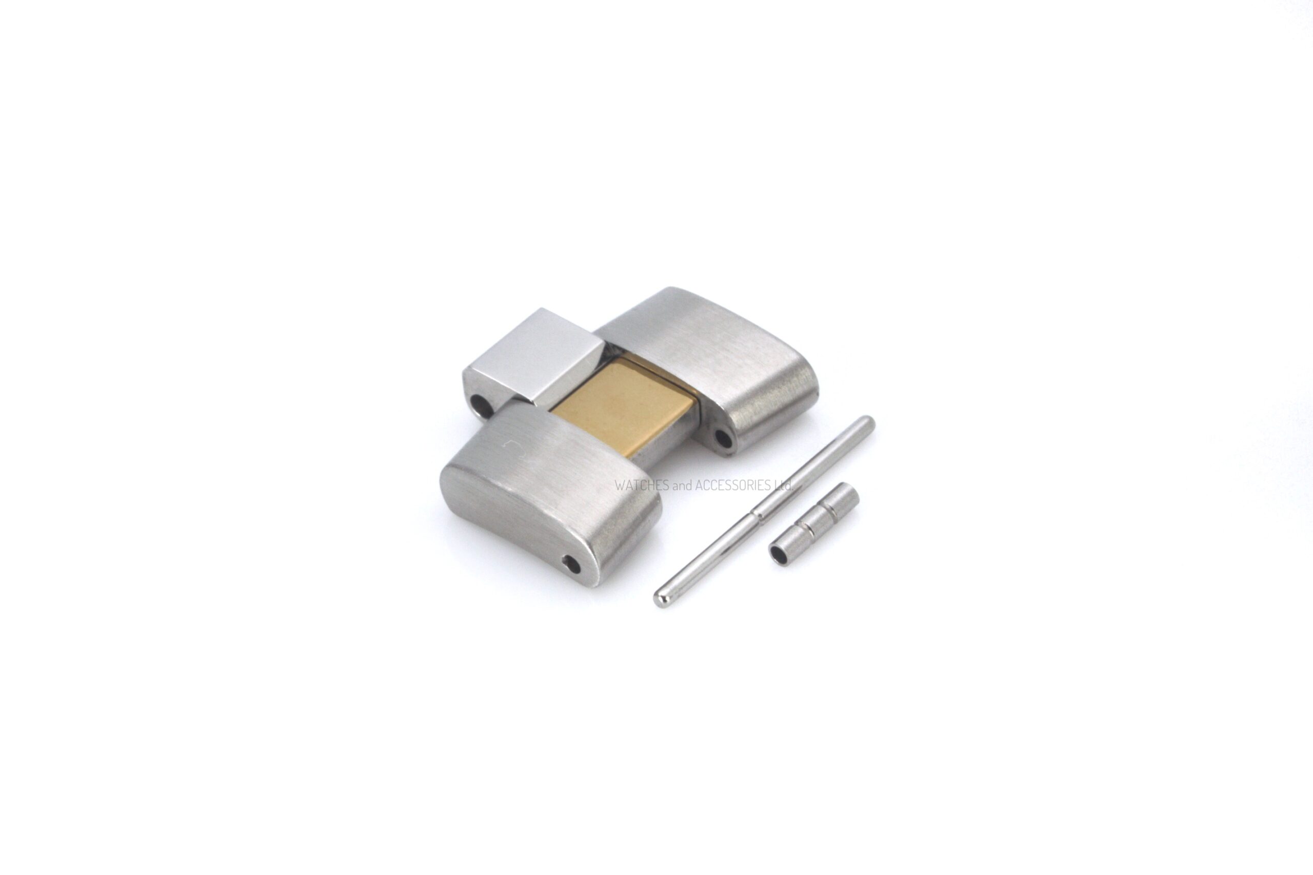This link is crafted from a blend of Yellow Gold and Steel, offering a classic two-tone finish.
